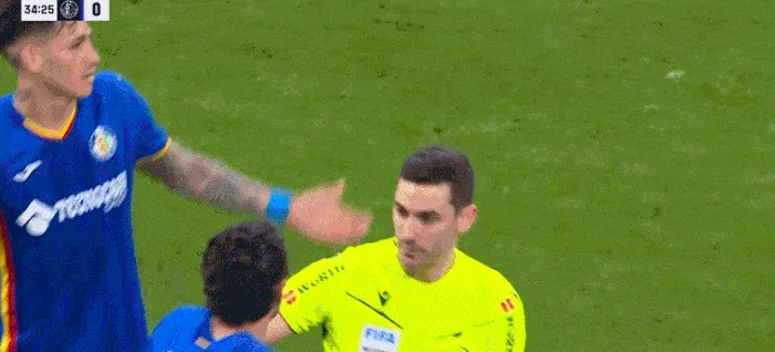 阿兰巴里飞身撞倒居莱尔破坏反击,被主裁判黄牌警告